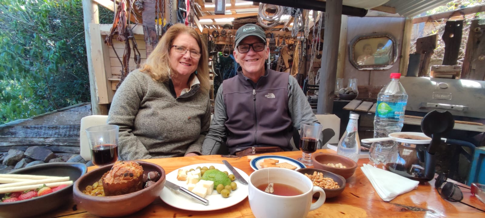 Matthew Brown y Donna Thayer, California, EEUU., quienes degustaron un muy buen desayuno, sostuvieron una amena charla sobre Arte Natural y realizaron un breve taller con fragmentos de madera que se llevaron como recuerdo de su visita.