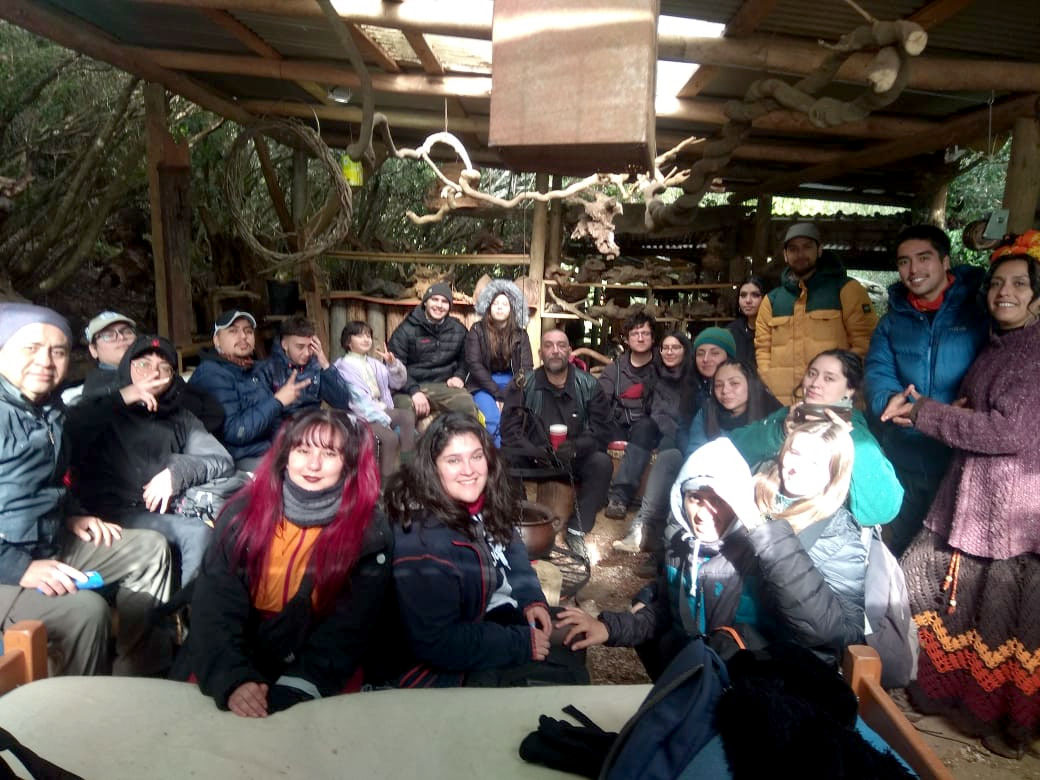 Delegación de un grupo de estudiantes de intercambio, visita orgnizada por la ONG AFS Intercambios Interculturales. En el grupo había personas de Alemania, Japón, Hong Kong, China y Chile. En la oportunidad degustamos un cocimiento en olla de greda al fogón realizado por la maestra de cocina Dennys, sostuvimos una charla sobre el Arte Natural, para luego ellos hacer un pic nic en el sector del Quincho junto al río del Parque Vizcachas de Rari.